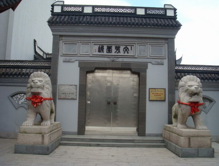 乍一见,就让人想到缔造者一定是个依恋传统的文化人。书雕城仿古追雅,门前中庭矗立着云纹盘龙的一对华表,朱阁画厅飞檐翘角,马头墙粉壁黛瓦,古色古香。但与紧挨着的东沙老街旧屋一比,反倒显得簇新簇新,醒目得无须引领就能寻到书雕城。